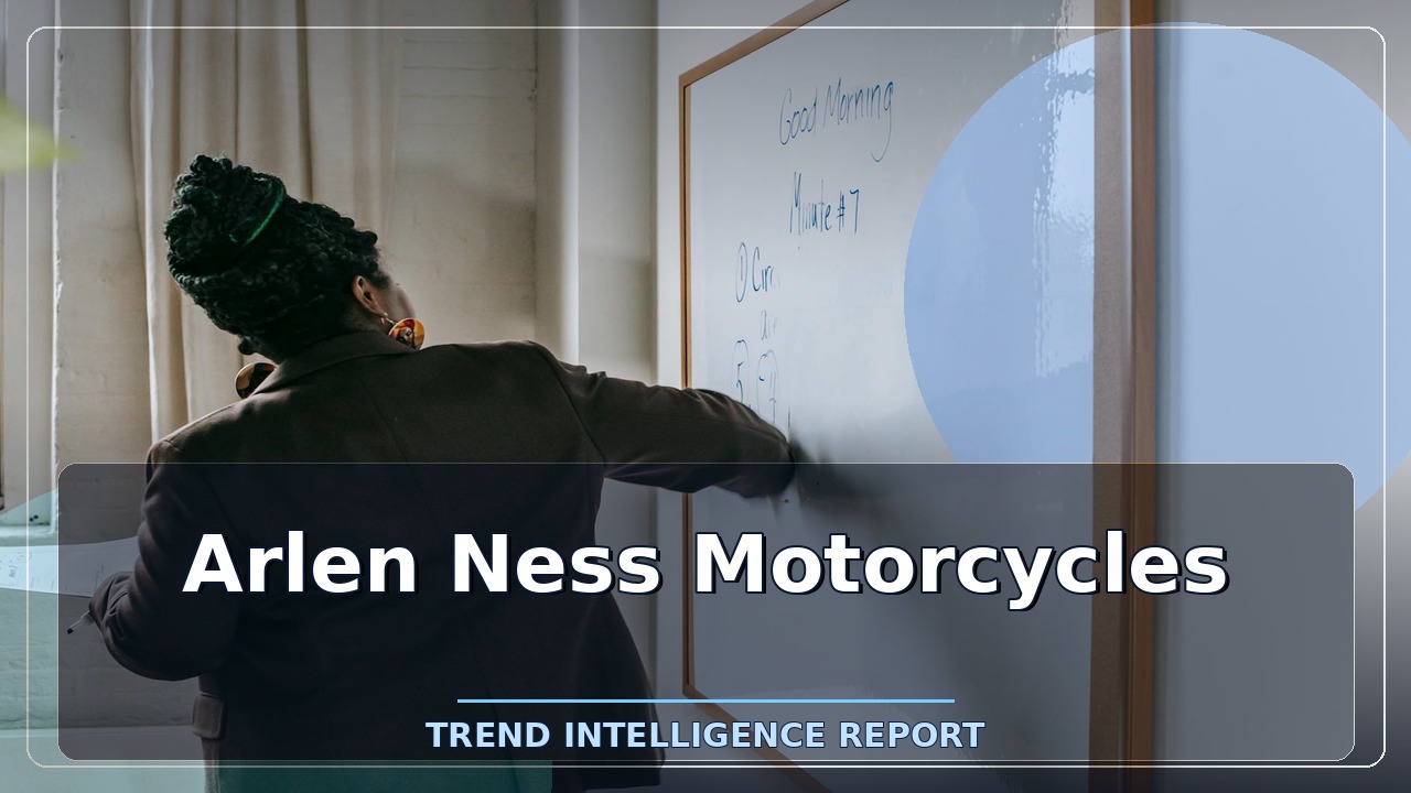 This page is a structured trend intelligence brief for 'arlen ness motorcycles' in US. It summarizes momentum, intent paths, entity context, and operational actions.
